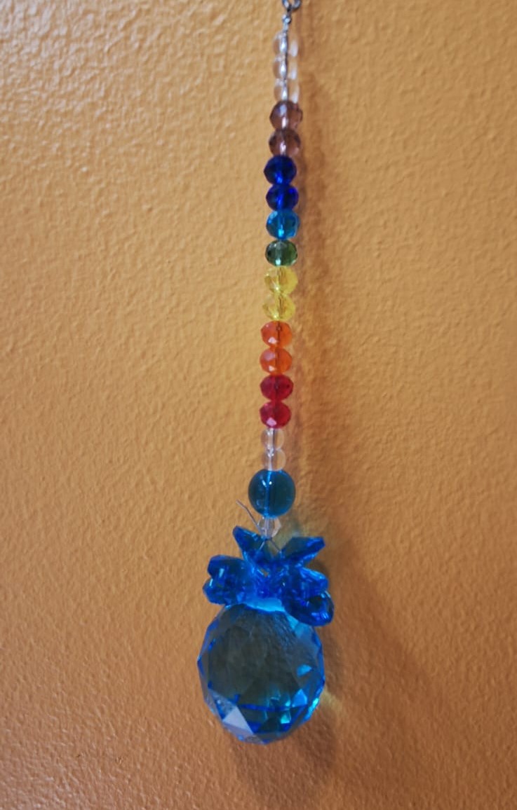 Prisma con cuentas de vidrios de colores de los chakras, colgante para ventanas ya que descompone la luz del sol en mini arcoíris.